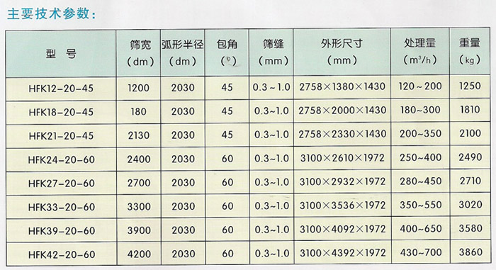 HFK型可翻轉弧形篩主要特點: